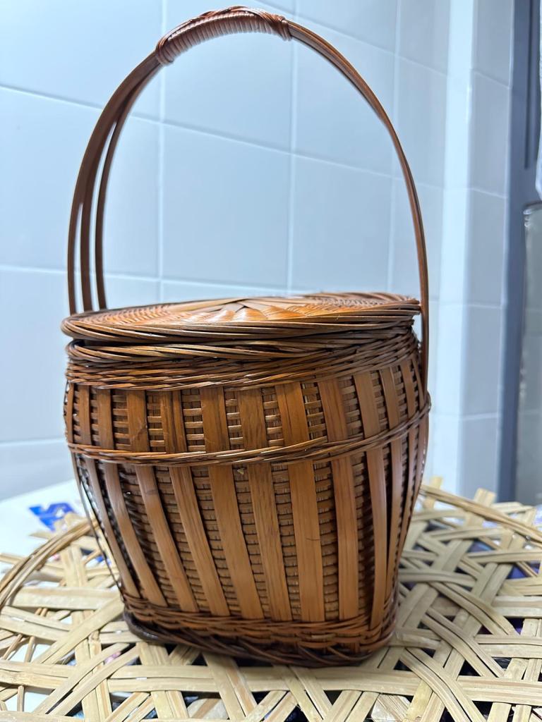 The bamboo basket is crafted mainly from bamboo and rattan, reinforced with metal or wood, and entirely handwoven. It is considered one of the finest examples of Hakka bamboo craftsmanship, comparable to a luxury handbag. Among its variations, the bamboo basket with handle and lid — available in single- or multi-tiered forms — could be carried by hand or slung over the shoulder, earning it the reputation as the “flagship” of bamboo wares. Beyond its practical function, it embodies filial respect for elders and conveys deep remembrance of ancestors.