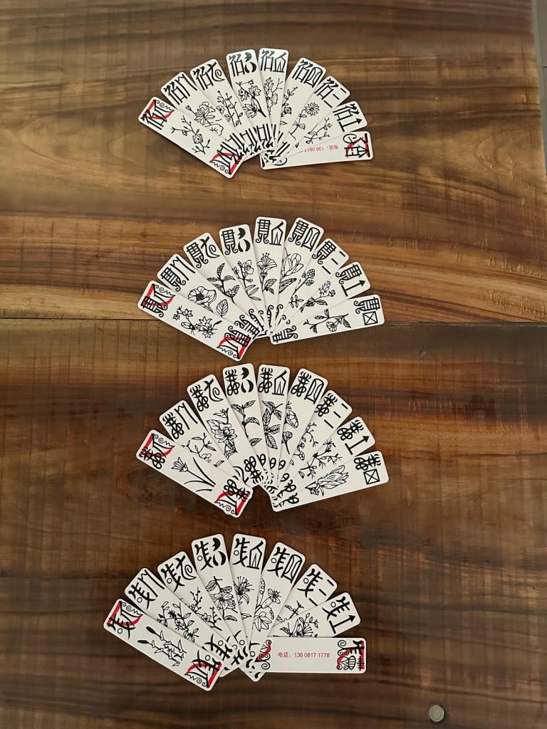 In Hong Kong, the game is most often called “Six Tiger Cards”. The deck consists of four suits—Shi (Tens), Guan (Strings), Suo (Cords), and Qian (Coins)—each with nine cards, making a total of thirty-six. Within each suit, the cards are numbered from one to nine. Though the patterns are intricate, the play is full of delight. At first glance, outsiders may find the rules difficult to grasp, yet within the immersive atmosphere of daily life, even illiterate women could master the game with ease and play skillfully.